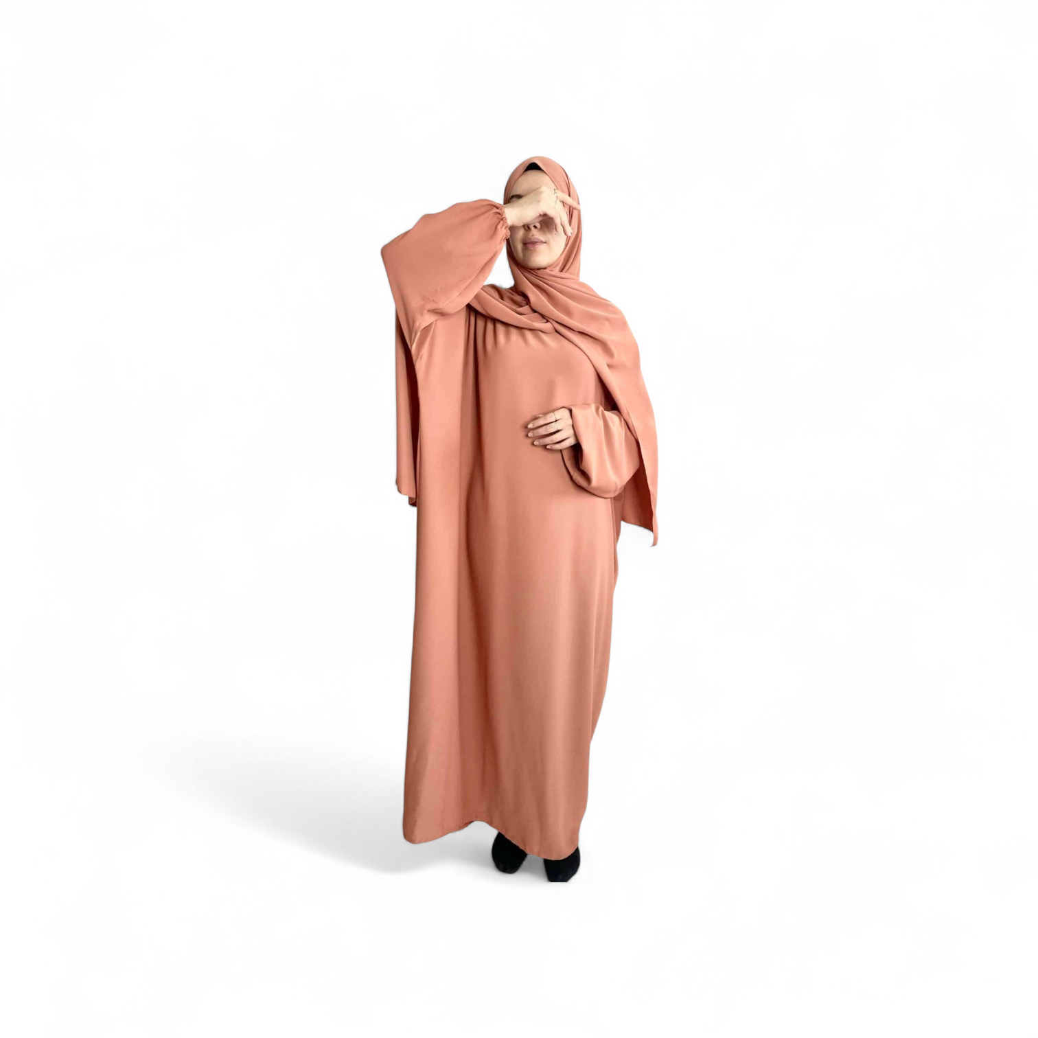 Jolie abaya large, soie de médine, pratique avec son foulard intégré et à la fois élégante avec son tissu doux